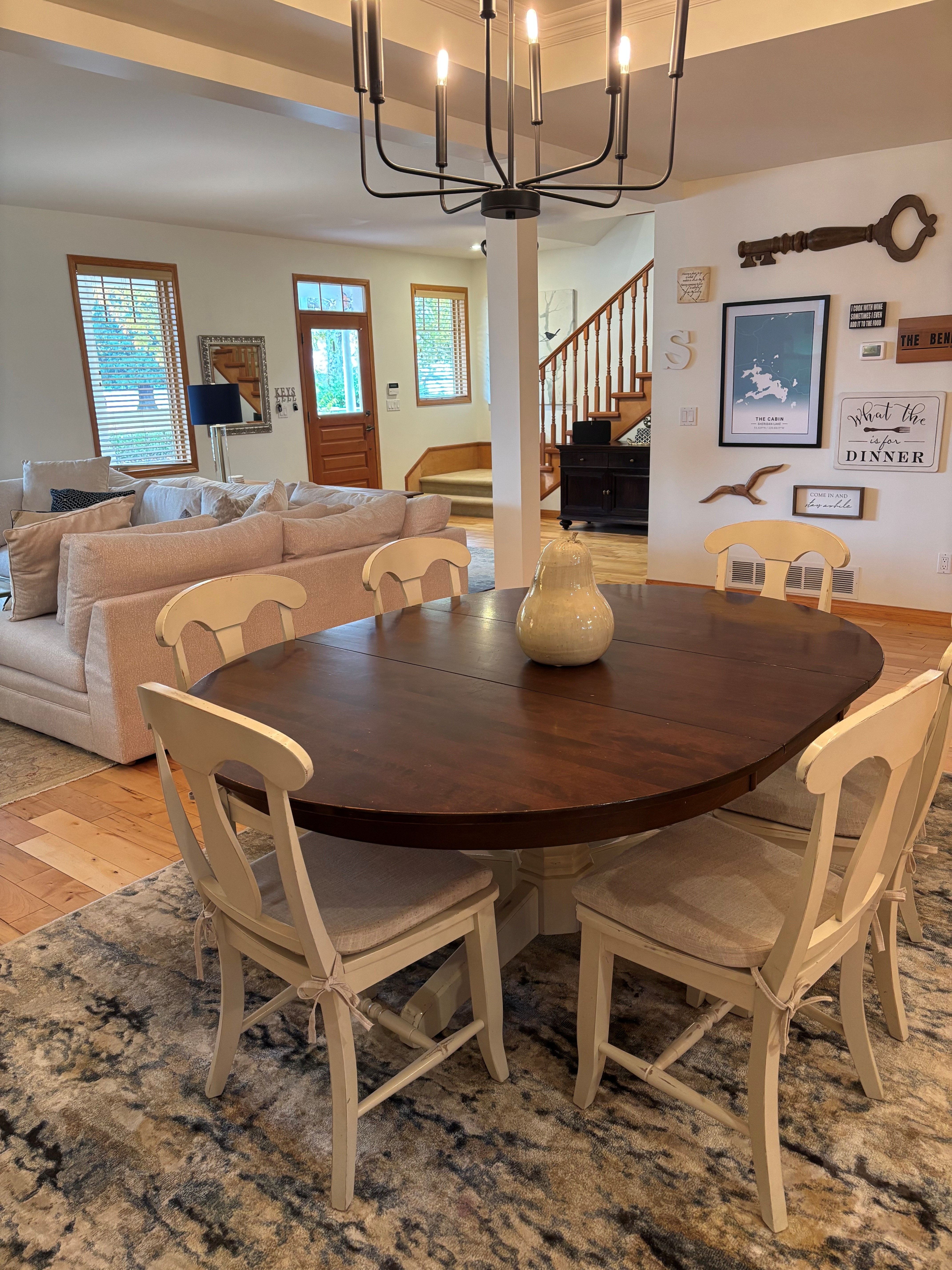 - open concept main with large island and hardwood floors